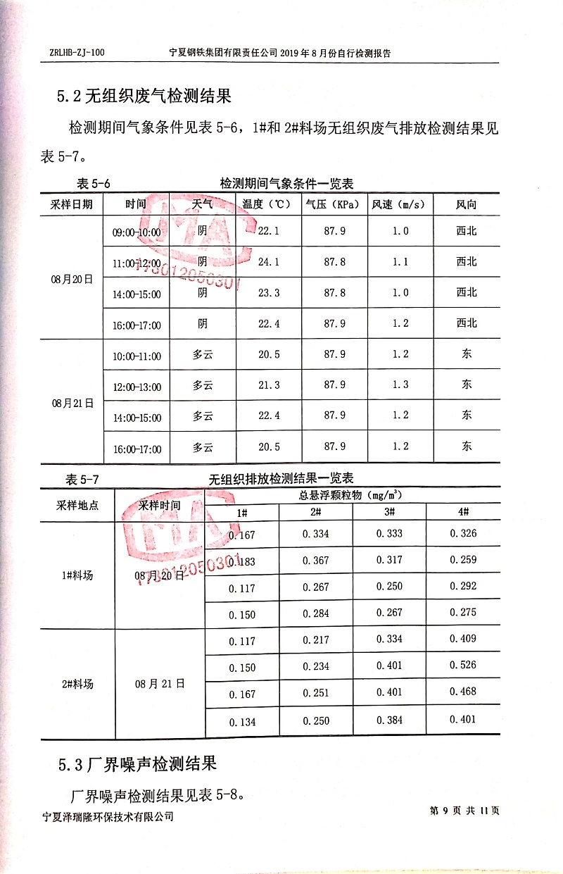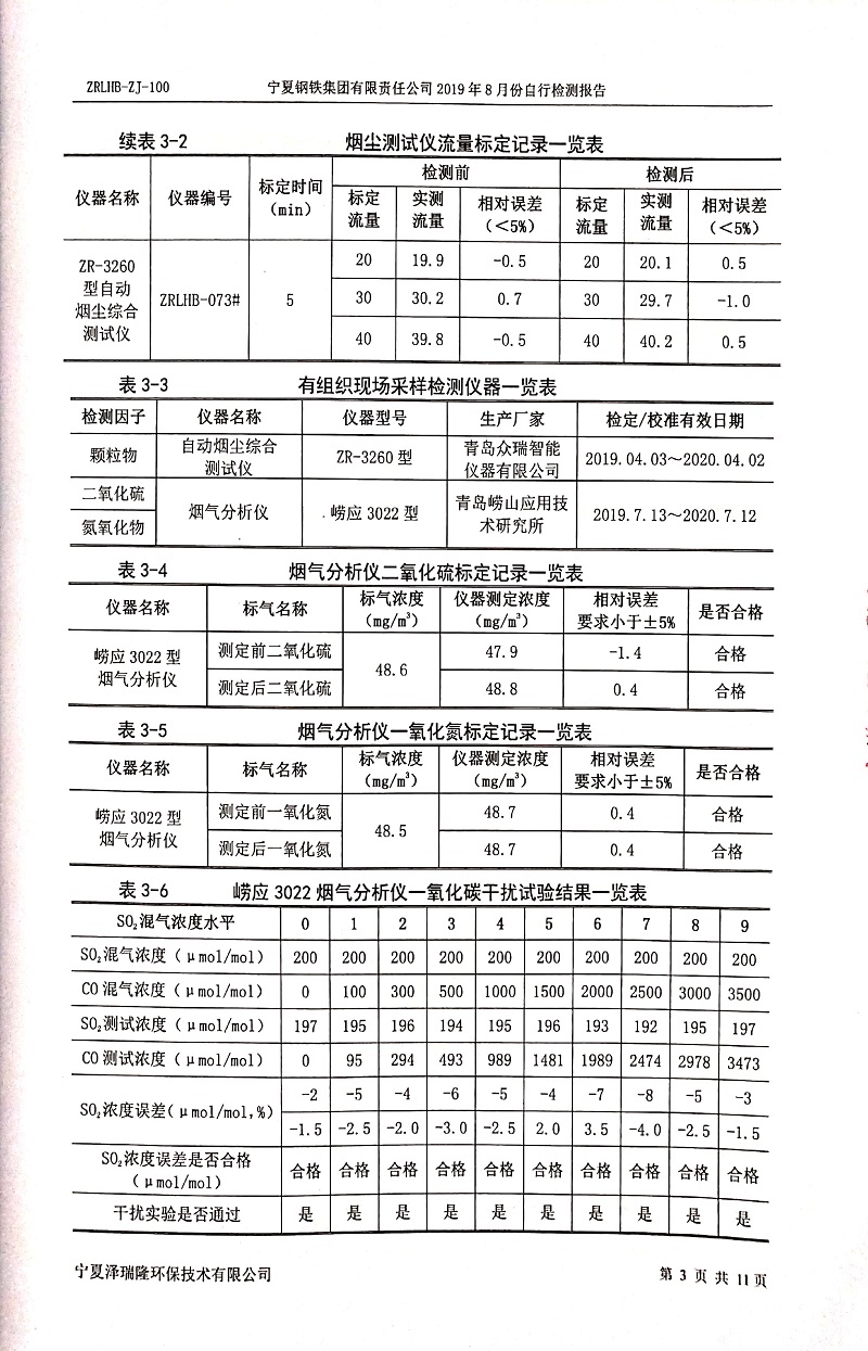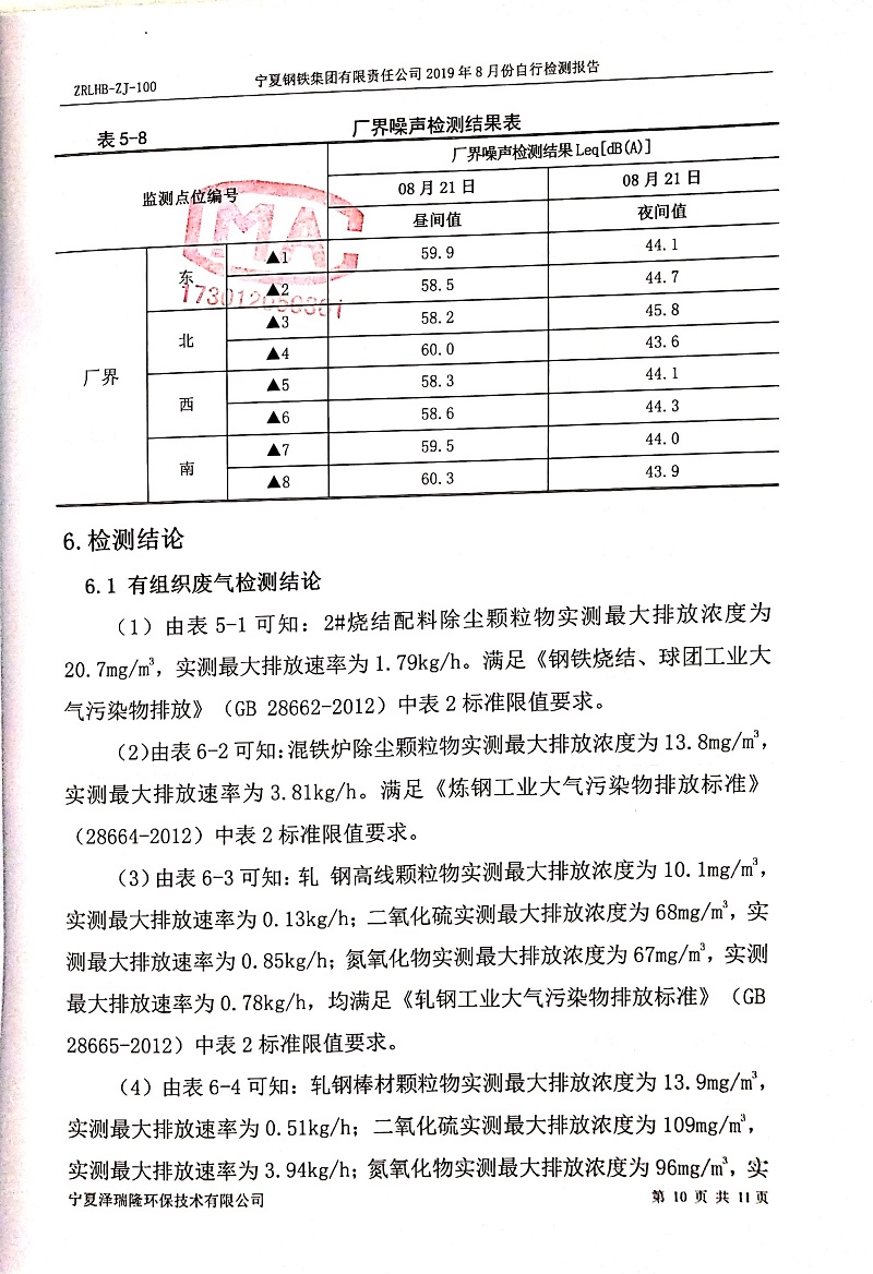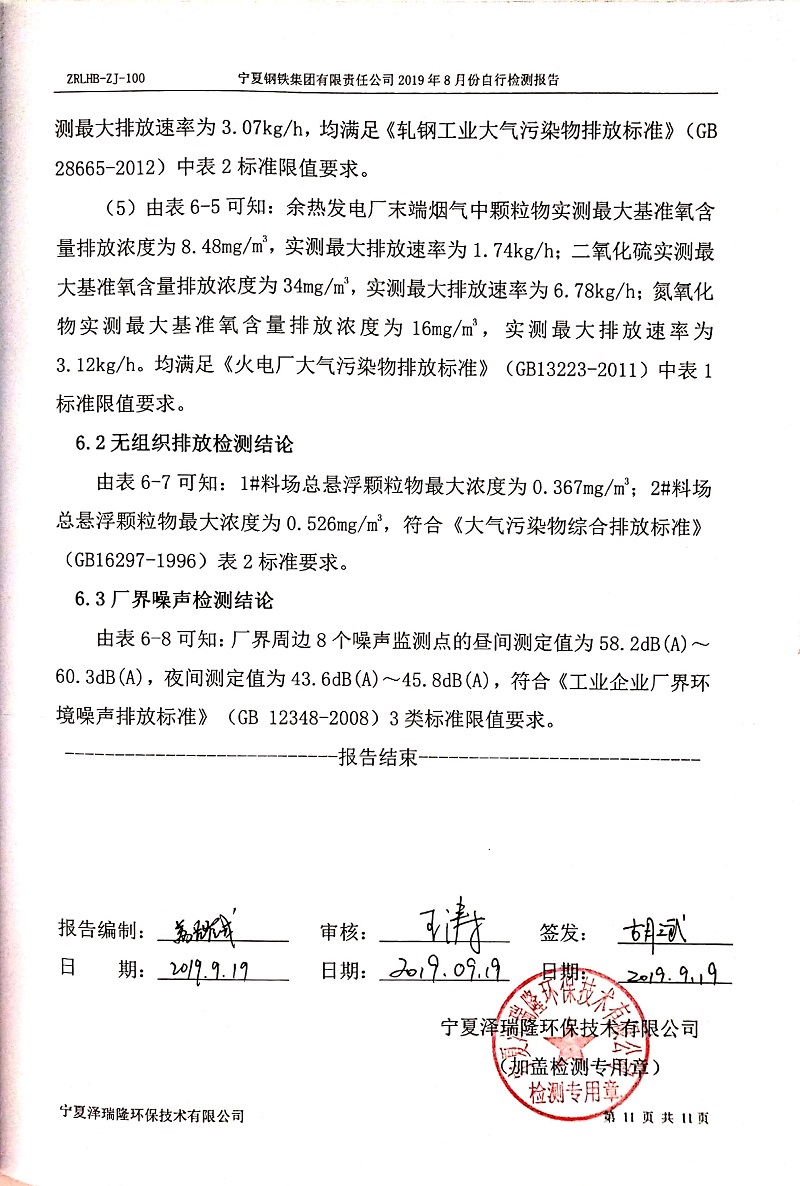 寧鋼2019年8月份自行檢測(cè)報(bào)告