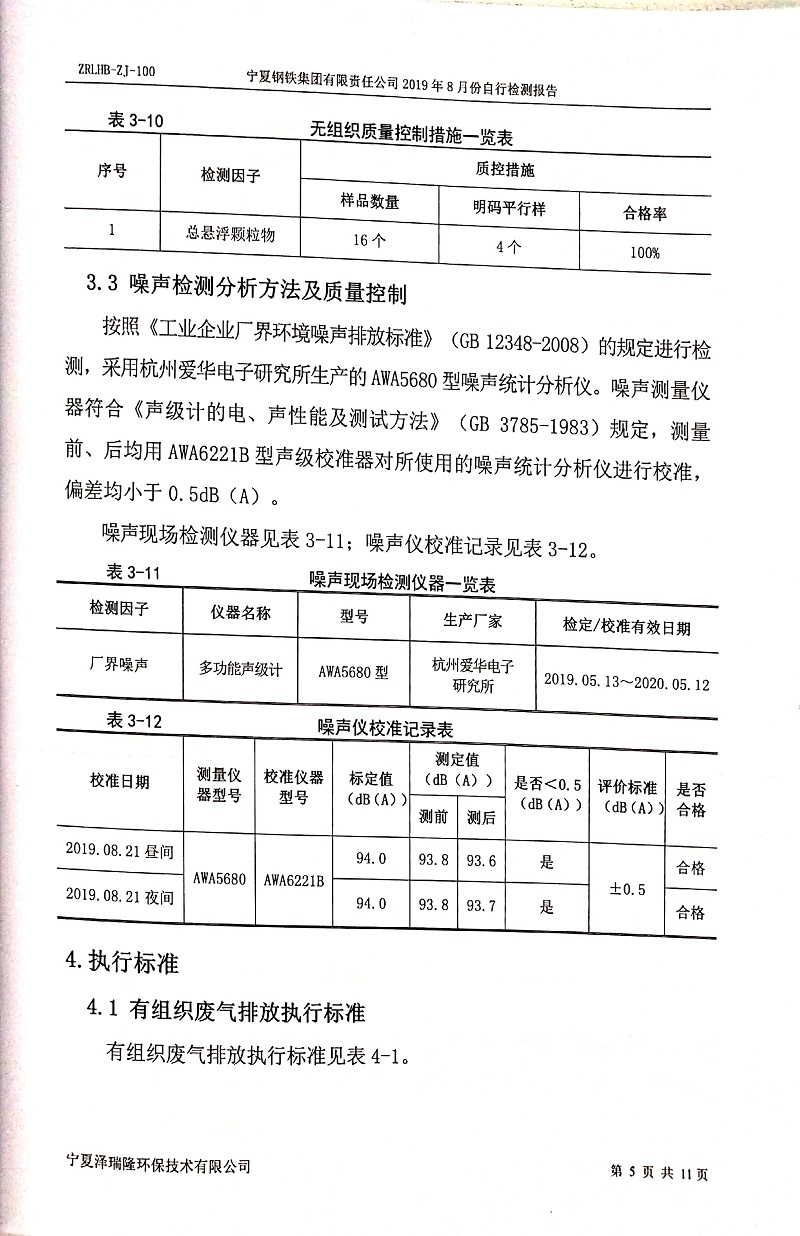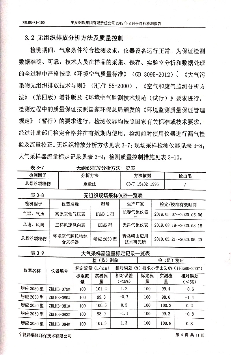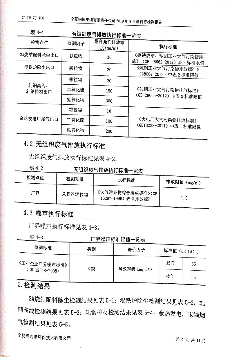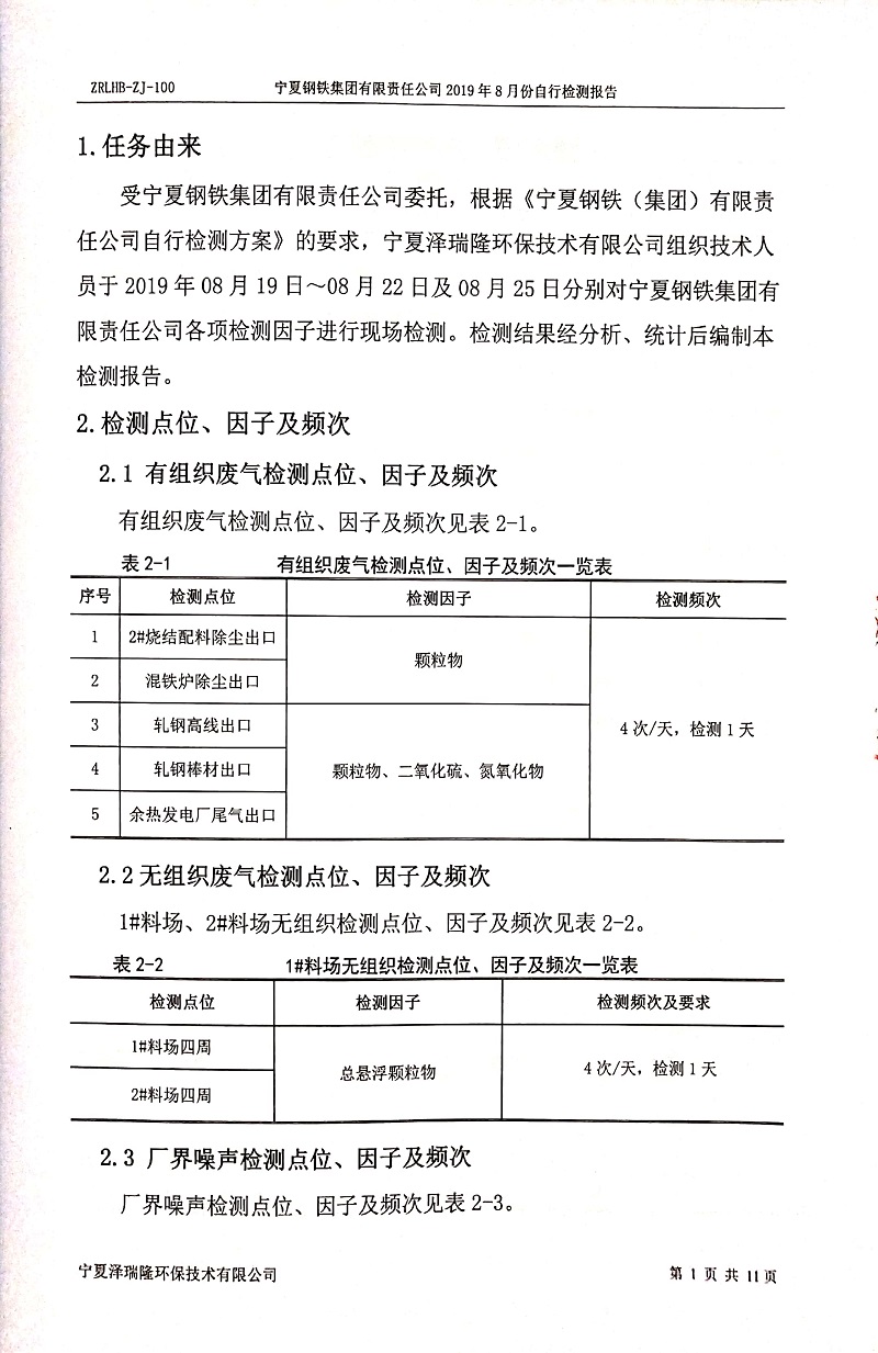 寧鋼2019年8月份自行檢測(cè)報(bào)告