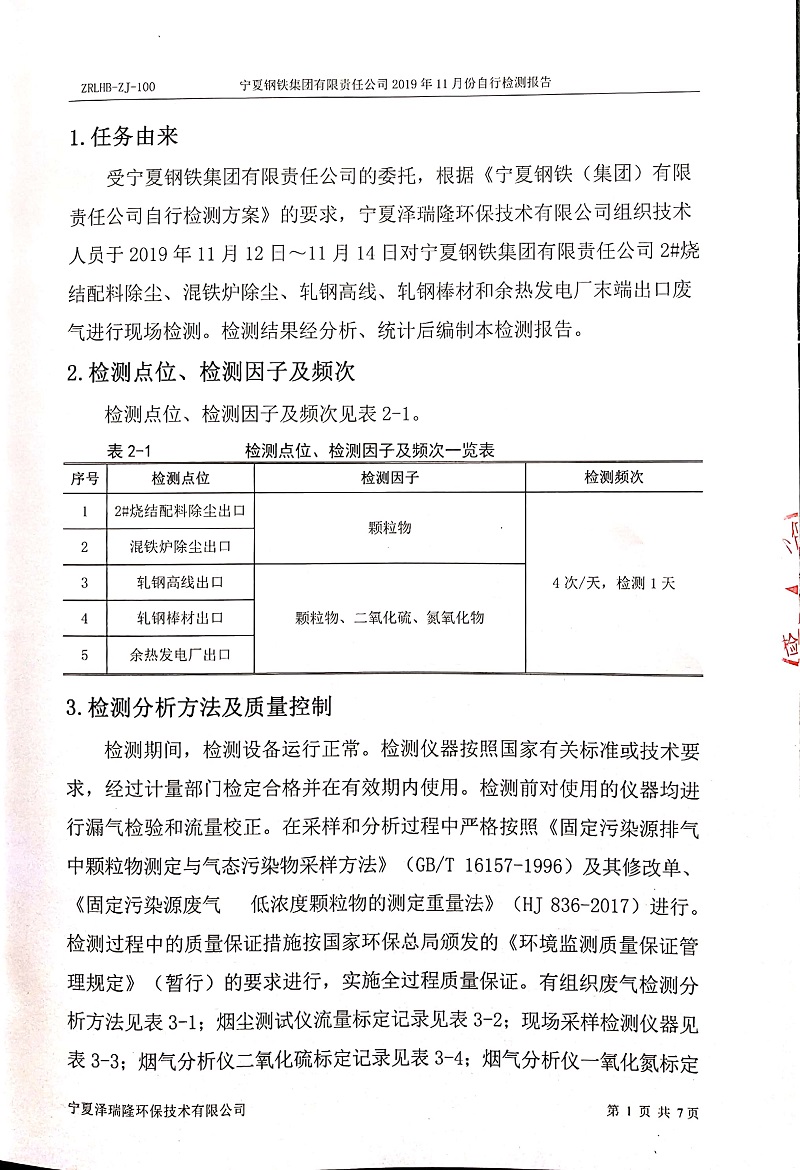 寧鋼2019年11月份自行檢測(cè)報(bào)告