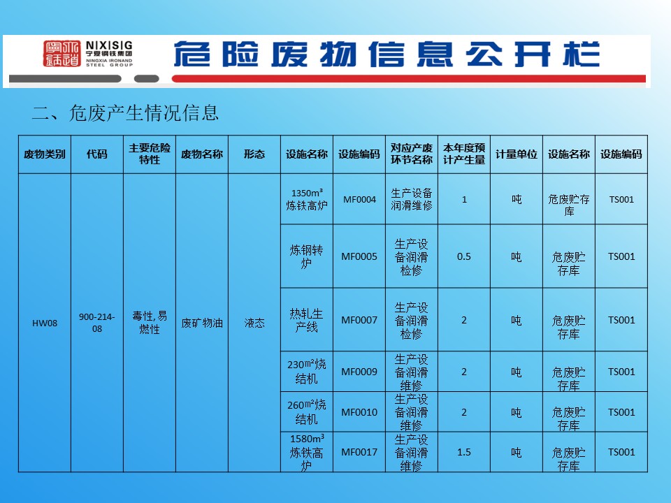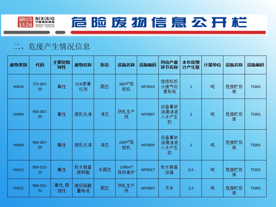 寧夏鋼鐵危險(xiǎn)廢物信息公開(kāi)
